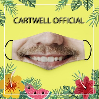 Khẩu trang bựa hài hước hút thuốc mặc người hình mặt râu 9 CARTWELL vải cotton 100% dễ thở phòng dịch bệnh dành cho nam