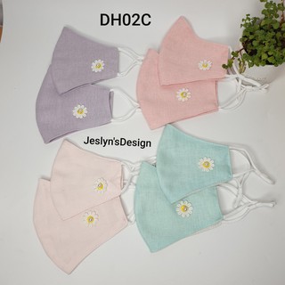 Khẩu trang thêu tay vải linen cúc nhí 3D JL92-Hand embroidered masks