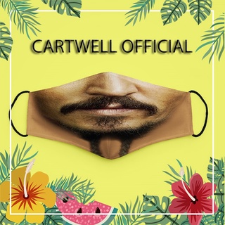 Khẩu trang in mặt người mặt người dị hề bựa Johnny Depp CARTWELL vải cotton 100% không đau tai có thể giặt và tái sử dụn