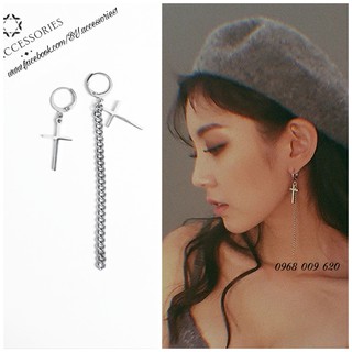 Khuyên tai bông tai chữ thập sợi mắt xích xỏ lỗ kết hợp cặp vành hình