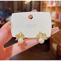 BÔNG TAI NỤ BẠC ĐÍNH NGỌC TRAI NHÂN TẠO HÌNH CÀNH LÁ - MELY 1040