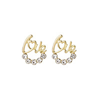 Khuyên Tai Hình Chữ Love Đính Đá Màu Vàng Gold Thanh Lịch Độc Đáo Hợp Thời Trang Cho Nữ