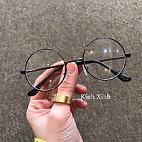 Gọng kính thời trang mắt tròn kim loại - Mắt tròn siêu bé (Đen)