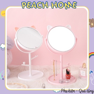 Gương trang điểm để bàn kèm khay treo phụ kiện xoay 360 độ siêu xinh tai MÈO 101651