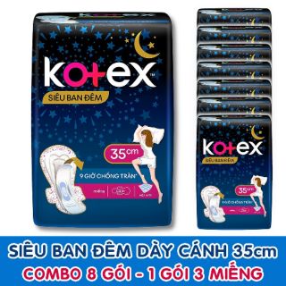 COMBO 8 GÓI BĂNG VỆ SINH BAN ĐÊM 35CM KOTEX, MỖI GÓI 3 MIẾNG