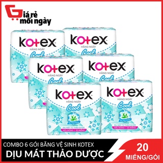 Combo 6 Băng Vệ Sinh Hàng Ngày Kotex Dịu Mát Từ Thảo Dược 20 miếngx6