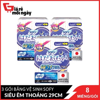 Combo 3 Băng Vệ Sinh Sofy Skin Comfort Ultra Thin 29cm Đêm Siêu Thoải Mái Siêu Mỏng Cánh 8 Miếngx3