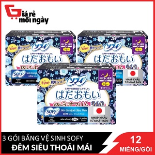 Combo 3 Băng Vệ Sinh Sofy Skin Comfort Ultra Thin 36cm Đêm Siêu Thoải Mái Siêu Mỏng Cánh 12 Miếngx3