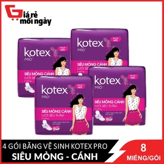 Combo 4 Băng Vệ Siêu Mỏng Cánh 23cm Kotex Pro Lưới Siêu Thấm 8 miếng