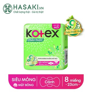 Băng Vệ Sinh Kotex Thảo Dược Siêu Mỏng Cánh 23CM (8 Miếng)