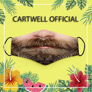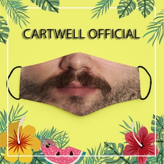 Khẩu trang 3d in mặt cười hài hước mặc người 3d chế mặt râu 1 CARTWELL vải cotton 100% không đau tai chống nắng chống gi