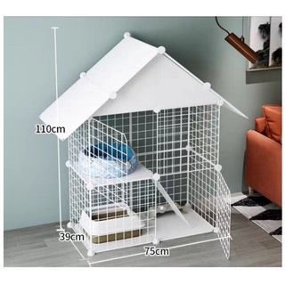 Chuồng mèo 2 tầng có mái lắp ghép đơn giản, cho 1 đến 2 bé mèo