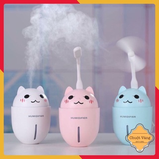 Máy phun sương tạo ẩm không khí cổng USB hình mèo dễ thương, Máy xông tinh dầu có đèn Led và cánh quạt mini siêu cute