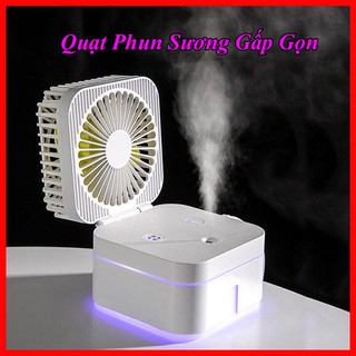 Quạt Phun Sương Mini Tạo Ẩm Để Bàn Sạc điện Usb Có Thể Gấp Gọn Kèm Đèn Led
