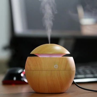 Máy phun tinh dầu mini phun sương tạo ẩm, khuếch tán tinh dầu vân gỗ tròn 130ml