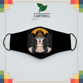 khẩu trang vải màu đen SKULLS_1537 CARTWELL poly cotton 100%, chống bụi in họa tiết 3d thời trang