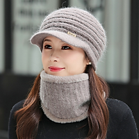 Mũ len lưỡi trai nữ kèm khăn phong cách Hàn mới, sét nón len cao cấp cho người trung niên- người già