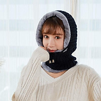 Mũ len nữ trùm đầu liền khăn choàng cổ lót lông ấm áp thích hợp cả nam và nữ