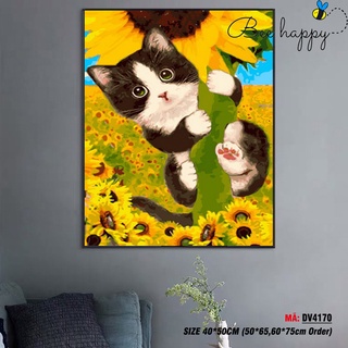 Tranh tô màu theo số BEE HAPPY mèo và hoa hướng dương DV4170