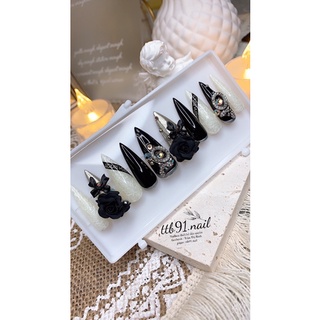 Móng giả thiết kế theo size tay đen mắt mèo charm nơ