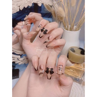 móng giả đính nơ Hin Nail màu đen form dài