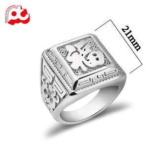 Nhẫn nam inox cao cấp thời trang rẻ đẹp kiểu chữ Phước bảng to soyong màu trắng thép không gỉ PTNNA01