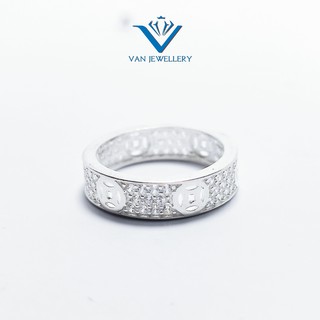 Nhẫn bạc nữ Nhẫn kim tiền đính đá bạc ta(bản dày full đá)_ Van jw