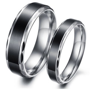 Nhẫn Trơn Nam Nữ Kết Hợp 2 Màu Đen Và Bạc Titan Ko Đen TT 2311
