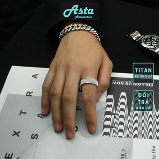 Nhẫn Nam Thời Trang Đính Đá Lấp Lánh DRING Asta Accessories Màu Bạc Cá Tính Hàn Quốc - Nhẫn Nam Đẹp Chất Titan - DRING