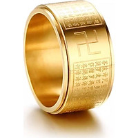 Nhẫn Bát Nhã Tâm Kinh Khắc Hình Phật Kim Tiền Jewelry - Không Gỉ Sét - Không Phai Màu