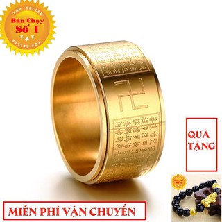 Nhẫn xoay BÁT NHÃ TÂM KINH khắc chữ VẠN không đen xoay 360 độ - Tặng vòng tỳ hưu Phong Thủy Titan