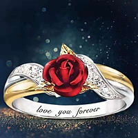 Combo Nhẫn Hoa Hồng, khắc chìm chữ " Yêu em mãi mãi ", Chất liệu hợp kim, Kèm túi đựng Cung Hỷ