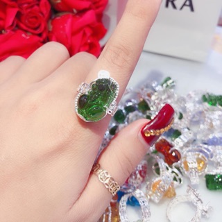 Nhẫn kim tiền bạc thật cầu may mắn tài lộc hột đá nổi bật cực đẹp mskt02/ Nhẫn bạc JQN