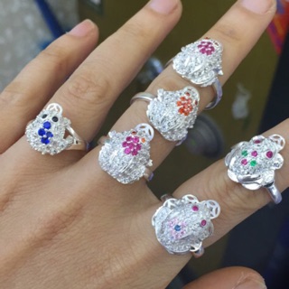 Nhẫn mèo đá màu nhân tạo bạc ta