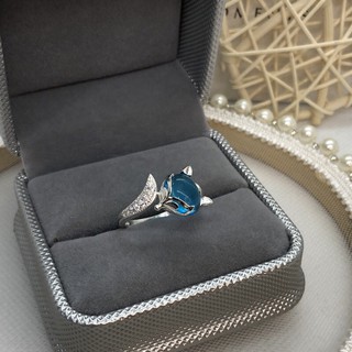 Nhẫn hồ ly bạc nmj đá nhân tạo