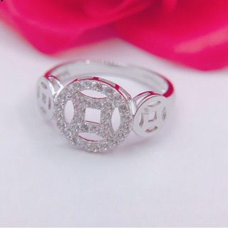 Nhẫn kim tiền Nmj bạc đính đá trắng