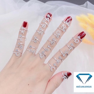 Nhẫn nữ chữ cái bạc thật đính đá sáng đẹp - Kho sỉ bạc Nhất Linh