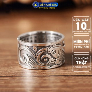 Nhẫn bạc nam Cá chép Lục Tự Chân Ngôn chất liệu bạc Thái 925 thời trang phụ kiện trang sức Viễn Chí Bảo N101173