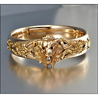 Combo Nhẫn Nam Nữ Kiểu cổ, Khắc đúc hình đầu Sư Tử, đính đá Zircorn, Chất liệu hợp kim titanium, Kèm túi đựng Nhẫn bằng Nhung mềm