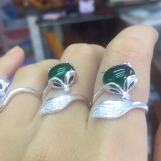 Nhẫn hồ ly bạc thật đá nhân tạo màu xanh lá