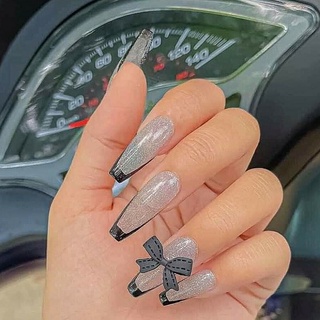 Móng tay giả m kèm keo trong suốt đính đá nhọn móng giả dài giá rẻ đính nơ vuông