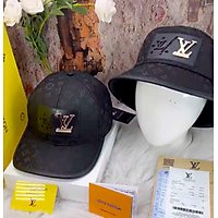 Combo nón cặp nam nữ logo LV sắt phối vải kaki form chuẩn thời trang đường phố cao cấp