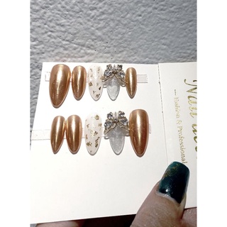 nailbox Nuna móng úp thiết kế móng trắng đính buom buom vàng inbox chọn size và shape có NƠ SHIP