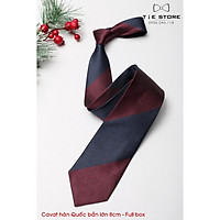 Cavat 8cm bản lớn Hàn Quốc cao cấp, đỏ mận kẻ xanh - Tặng kèm hộp Full box