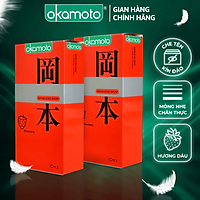 Bao Cao Su Siêu Mỏng Hương Dâu OKAMOTO STRAWBERRY, Xuất Xứ Nhật Bản, Hộp 10 Bao