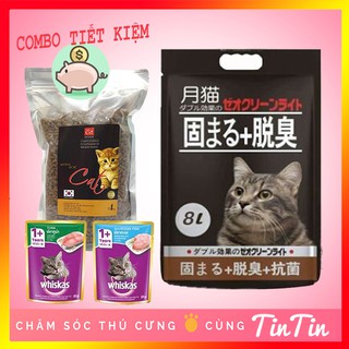 COMBO CHO MÈO LỚN: Cát 5L/8L & Thức ăn hạt Cat's eye 1 kg & 2 túi Pate Whiskas 85g Giá rẻ
