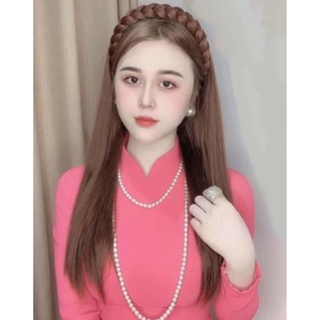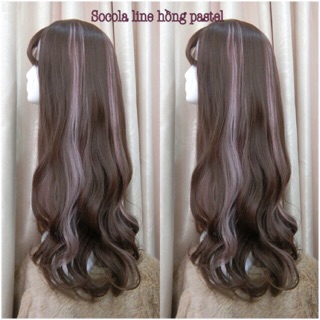 Tóc giả Nguyên đầu ❤️freeship 50k❤️nâu line hồng- tặng lươi chùm tóc- hình thật