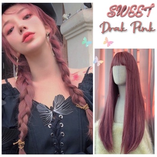 Tóc giả nguyên đầu thẳng hồng đậm