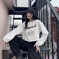 Áo Croptop Tay Dài Tà Bầu Phối Sọc Kèm Chữ Màu Đen Fshions TTKXA0220