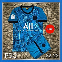 Bộ Quần Áo Bóng Đá CLB PSG Màu Xanh Ngọc Đậm Thun Lạnh 4 Chiều, Logo Thêu Nổi Cao Cấp Đẹp Giá Rẻ 2022 2023